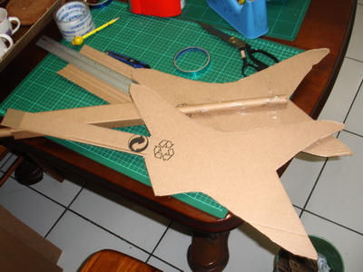 頭的部份也用兩塊裁切好的瓦楞紙做成。