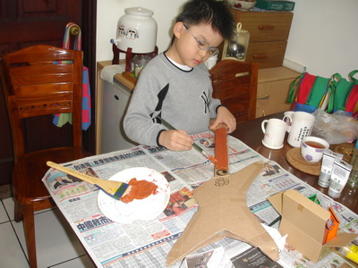 都是家裡就有的材料,倒沒有需要特別花錢買的,一般比較少的是瓦楞紙和壓克力顏料,若要買的話應該大約一百塊吧。