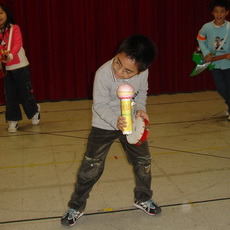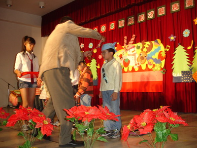 校長在台下觀看我們的表演時,只要出現電影內相似的橋段時,都很開懷地笑了出來。表演完畢,會場也充滿了掌聲。其實小朋友在台上的表演突發一些小小狀況,不過,也甭提了,也免檢討了,該享受的應該是歡欣的氣氛。結束後,家長會長上台頒獎牌給每個小朋友,鼓勵大家認真精彩的表現。