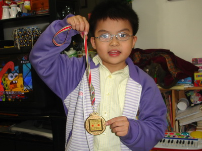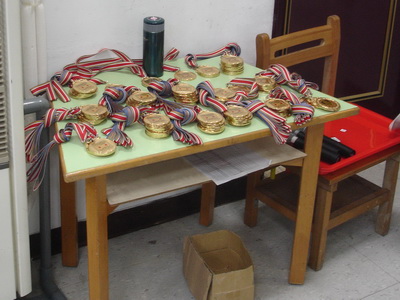 獎牌擺了滿桌,不過沒有競賽的氣氛,只有等待,因為能在今天上台表演的小朋友都有獎牌可拿。