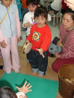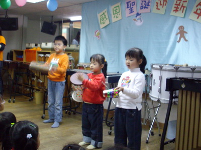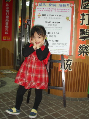 朱宗慶打擊樂教室計畫在年終舉辨個『感恩.聖誕.迎新年』的活動,除了蓉蓉所屬的幼五班級將舉辦發表會之外 (因前次大型的發表會─擊樂城堡開Party─中他們沒有出場),更讓學員可以自行組隊表演。除了這是一個上台秀的機會,也是讓三寶可以藉此大集點數,於是我們早早就報名了。