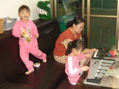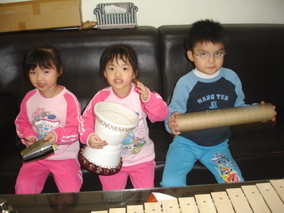 媽媽更是早在一個多月前便開始準備,因為包含選曲、選樂器、組合搭配及訓練小朋友等,都需要蠻長的時間。由於寶寶和蓉蓉學的時間長,而小潔卻還是個新手而已,所以要選出讓三個人可以同時演奏的曲子,又不能太簡單,大大考驗著媽媽的本事。