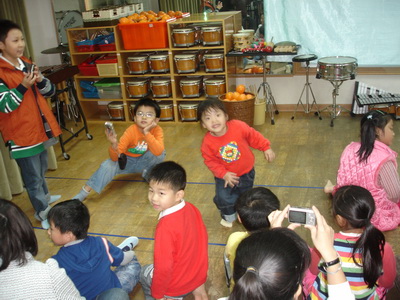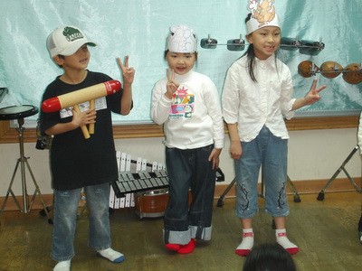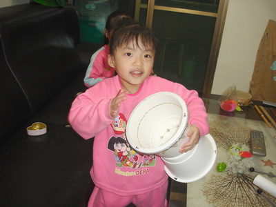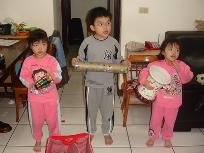 第二首曲子『地球朋友』似乎沒有發揮原來的水準。敲打的部份都完美,唯獨這首要搭配嘴巴唱歌,結果三個人的聲音都沒有出來,因為媽媽還特地改了段歌詞,在一旁的主任及老師都發覺到歌詞有 變,但似乎沒聽懂,實在太可惜了,因為更改的歌詞是『……樂器自己做,創意樂無窮,廢物再利用,也是愛地球……』不但和前段相呼應,更表達出我們自己做樂器的嶄新風格。不過最後主任還是有特別問到小潔的樂器是怎麼做的,看來有受到注意了呢!