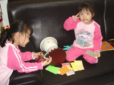 蓉蓉和小潔則參與樂器的裝飾,準備了許多顏色的小貼紙和反光膠帶,就由她們去設計自己要用的樂器外觀了。