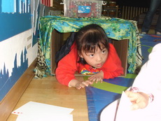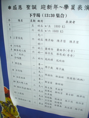 就這樣經歷好長的一段時間,終於到了表演當天。因為地點直接在上課的教室內,所以原本約十人上課的教室瞬間擠進六、七十個小朋友及家長,非常熱鬧。