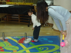 第一階段的表演結束,第二階段安排的是讓小朋友歡樂的闖關遊戲。共有三個關卡,不過因為小朋友太多,排隊等候的時間有點長,大人和小孩都有點累。