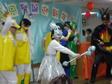 最後第三階段是音樂教室特別請來新莊長老教會及故事義工團的義工演出的歌舞劇─貝斯特的聖誕。演出的人員都非專職的舞者,服裝也都是自製的,但每個人都很認真地演出,十足的專業精神。而且除了歌舞故事外,還有大狂風襲捲的劇情,就看到一團人在狹窄的教室舞台內擠來擠去,增加了不少笑果,疲勞的精神也恢復大半。