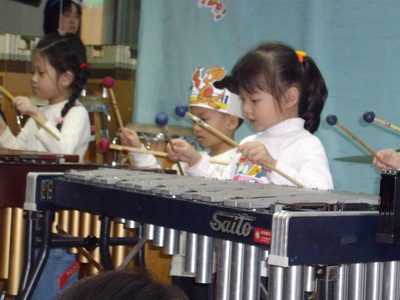 之後下半場也是由蓉蓉的班級先出場,演奏的曲目是『來爬音階山』,是標準的鐵琴練習曲。