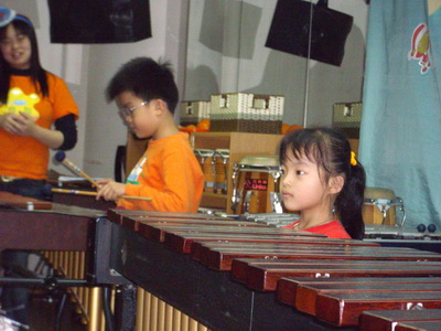 蓉蓉很認真專注地敲著,把這一陣子的學習成果展現出來。