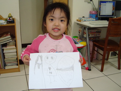 我之前有想是什麼蝴蝶之類的嗎?不過為了避免影響了小孩自己的想法,所以就沒打算去猜它。