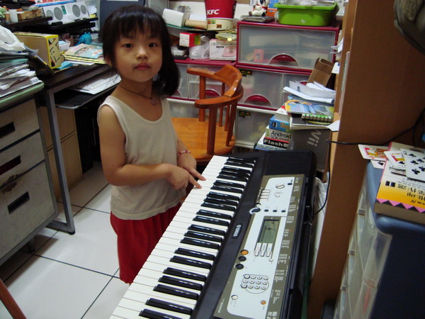 搬家後,把電子琴擺出來,小潔看到就忍不住去按一按。