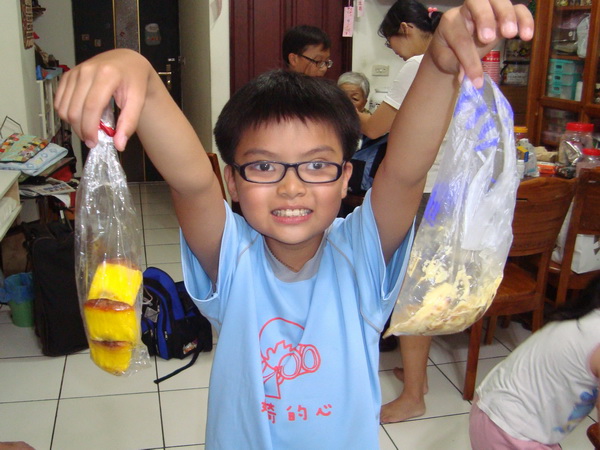 媽媽一直在擔心,因為忘了交待要寶寶第一天帶去的麵包蛋糕,若沒吃完就要丟掉……最後証實媽媽猜的不差,果然從袋子裡拿出壓扁擠爛的兩包,不知道有沒有發霉發臭。