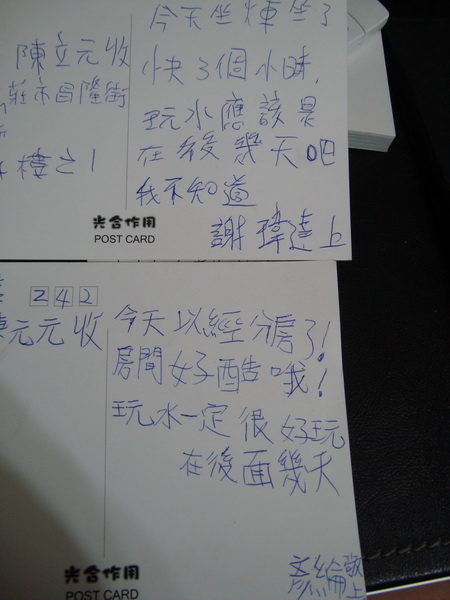 安靜的第三天……在信箱內收到兩封家書,應該是第一天到達時就寫的,潦草的字跡顯示出寫得很匆忙,而且心裡一直記掛著……玩水