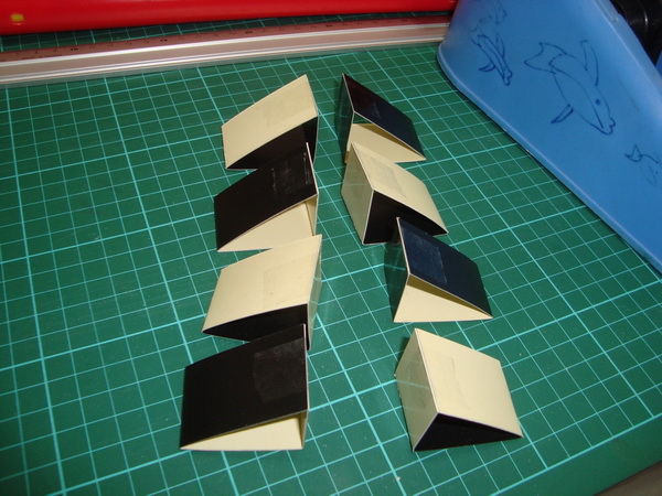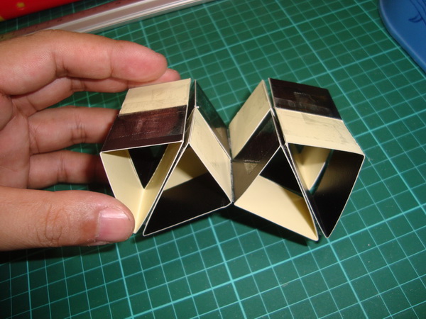 依據規則,兩兩在斜邊的那一面互相黏在一起。