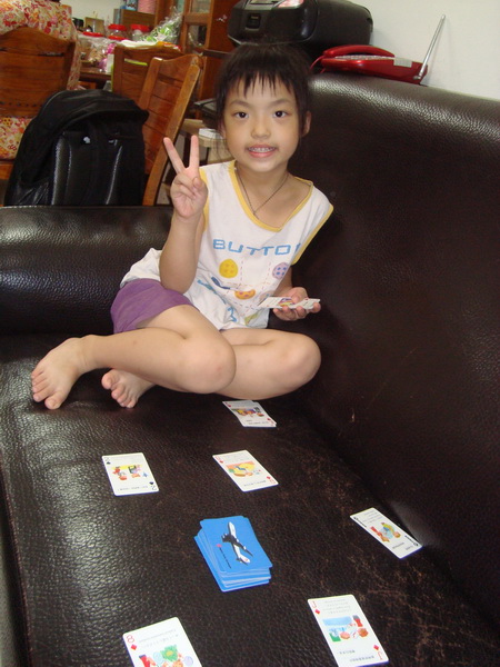 其他人不是不會玩、就是忘記了,於是要小潔教大家該如何玩。只見她清清楚楚地說一個人要發幾張牌,如何掀牌、出牌等,同時哪兩張能配在一起吃掉的規則也沒弄混,同時也要大家把吃到的牌分成紅、黑兩組,從小潔的說明裡發現,她真地把每一個步驟都一一記下來了,足見她的認真。