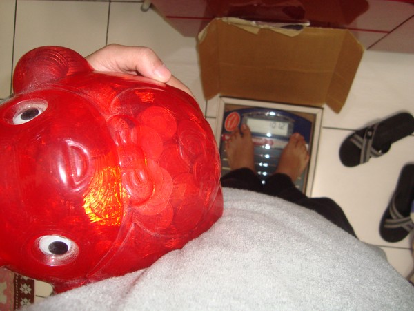 為了籌過年出國玩的旅費,把幾年辛苦存的豬公殺了。