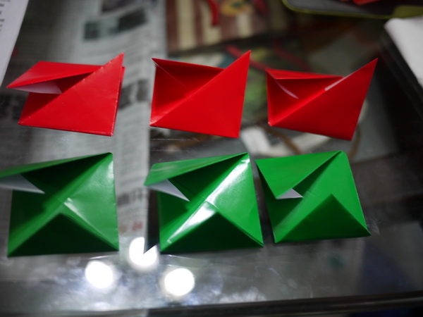 需要使用兩種顏色共六張的正方形色紙,兩組的摺法有些不同。