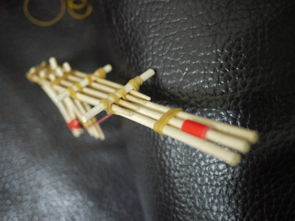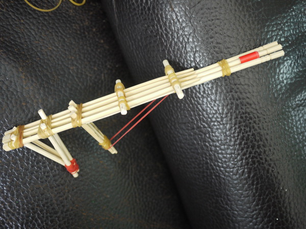 寶寶自己想到把竹槍重新設計,做成多發同時發射的機關,很不錯。