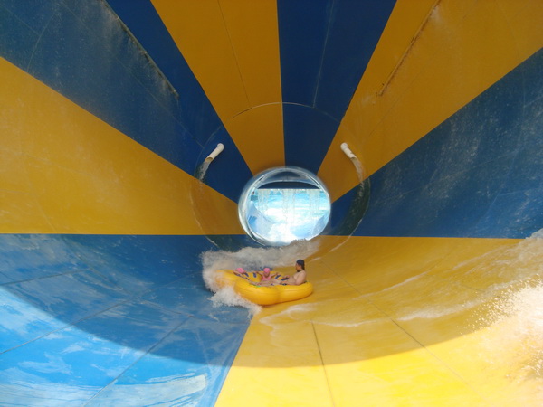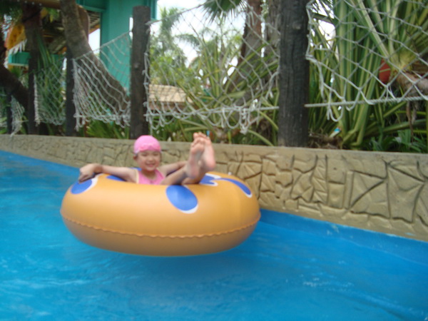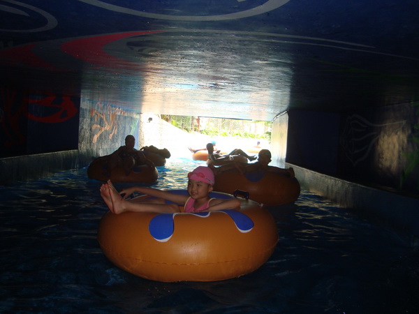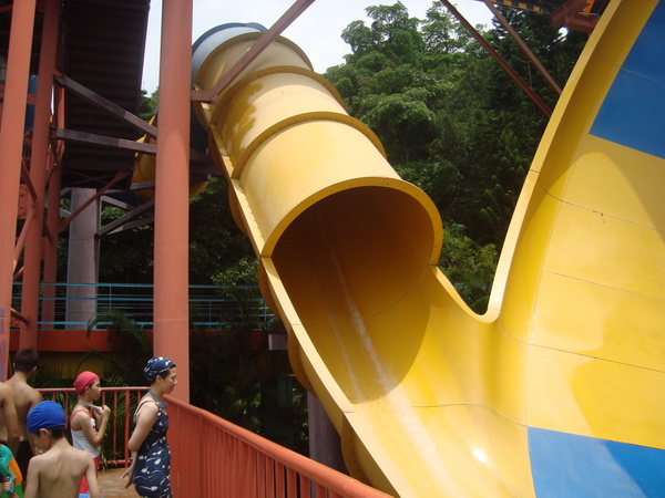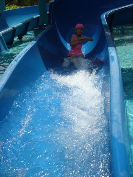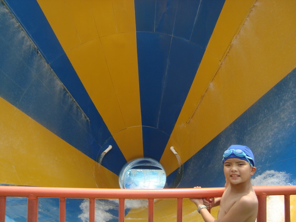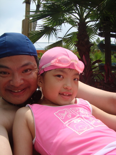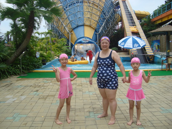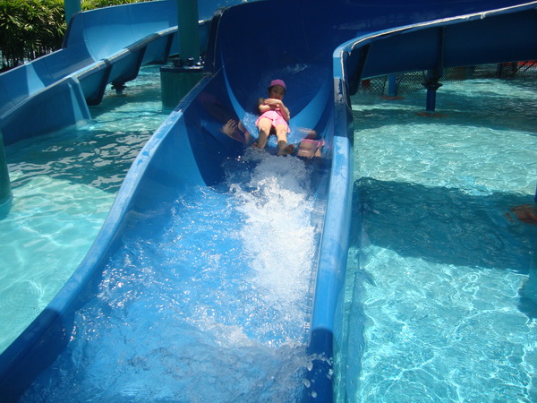 初次嚐試滑水道的蓉蓉和小潔居然一點都不怕,還覺得好玩,頻頻再上去往更高的地方排隊。