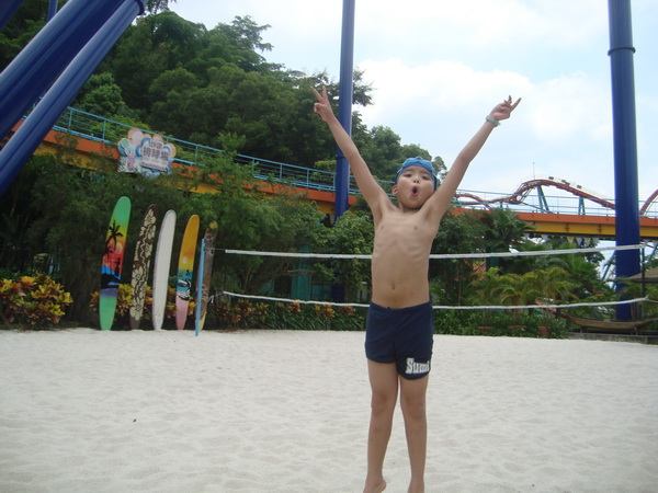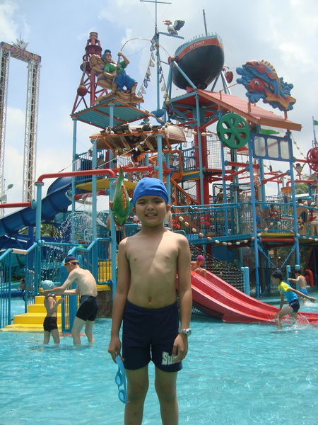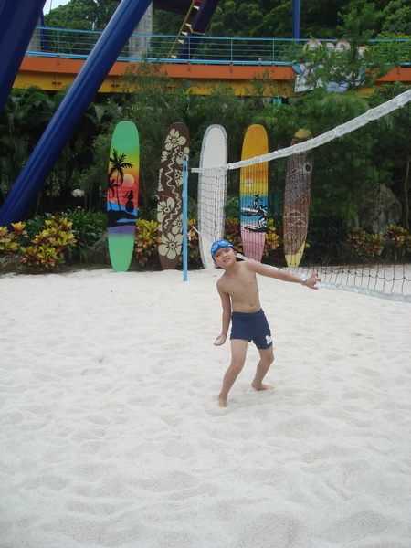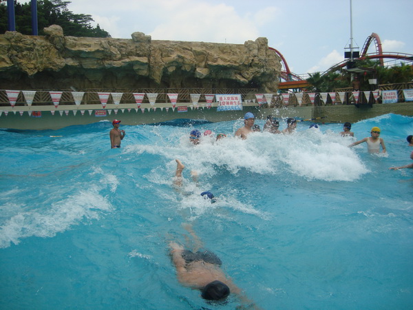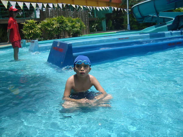寶寶比較想去『歐胡島巨浪』,不過這時候他還不知道那是更刺激的造浪,而是把它當成大一點的泳池而已。不過當他碰到巨浪的時候,居然就此愛上它了。