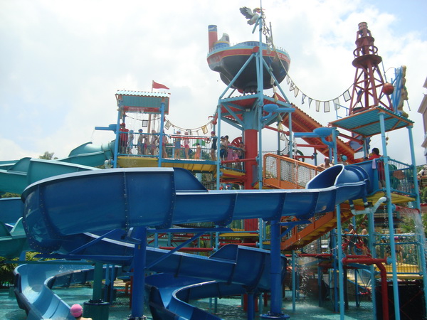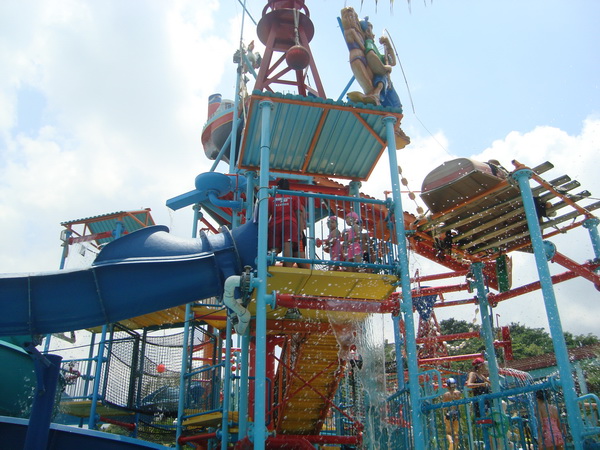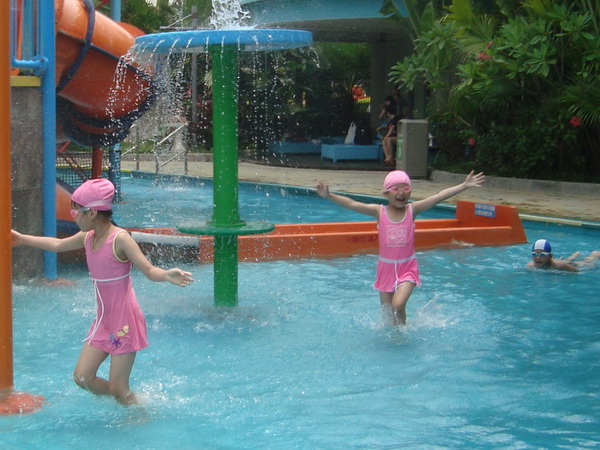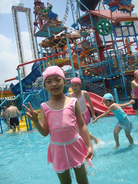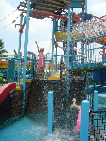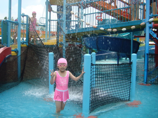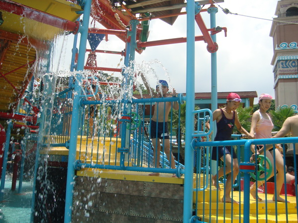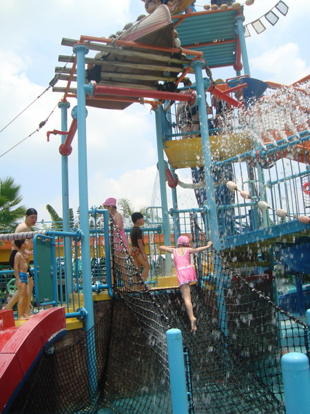 這組大型的玩水設施稱為『大船塢』,蓉蓉和小潔都已經不怕水了,玩這個可以完全放開。