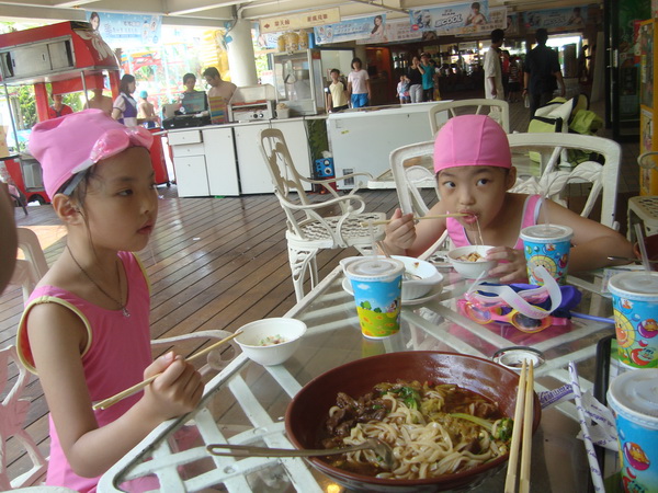 速速用完餐,再度進入水池裡去消耗卡路里了。
