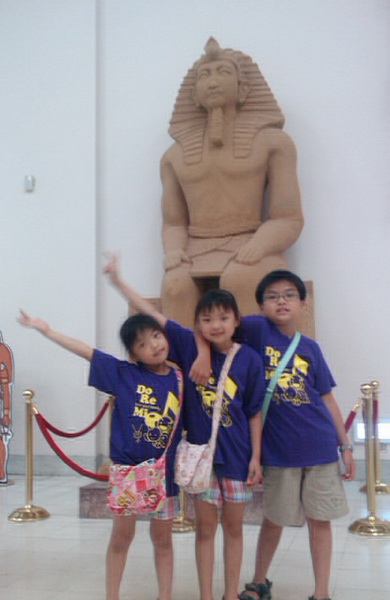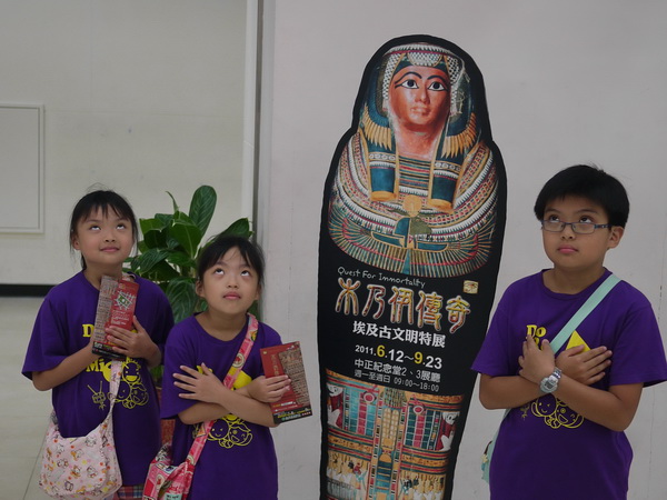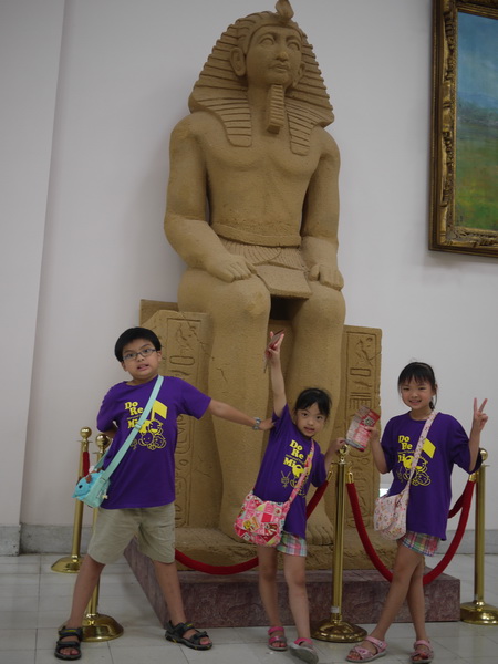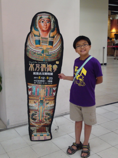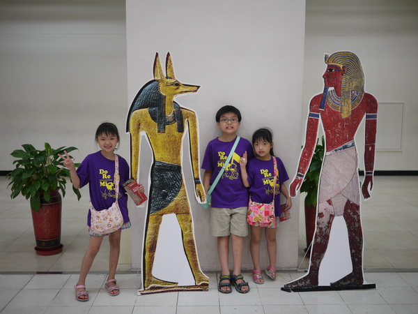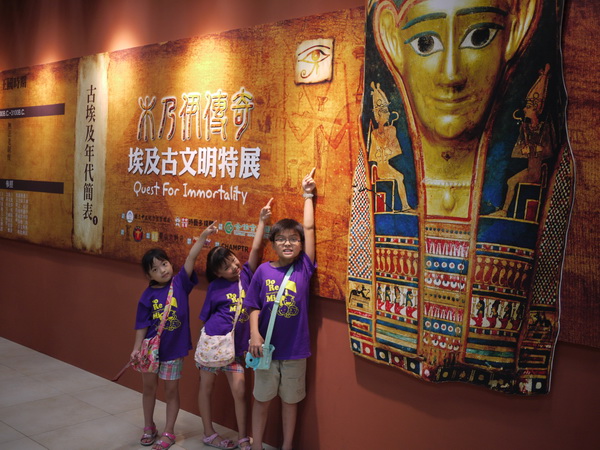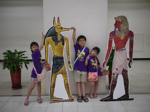 在暑假前就用學生特惠專案買了埃及古文明特展的票,為了避免假日人潮擁擠,媽媽也特別在週二請了假,全家一起穿上同款的全家福裝前去觀賞,蠻有收穫的。