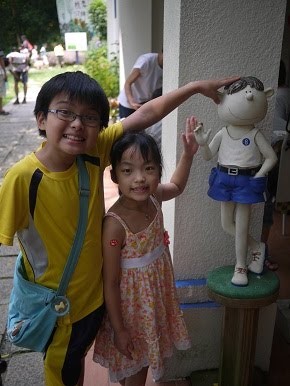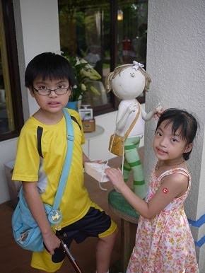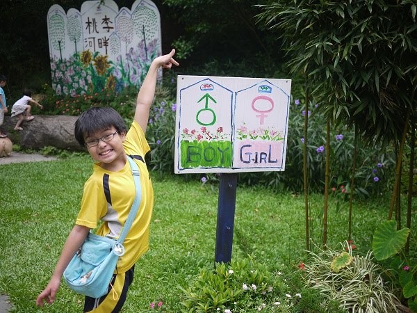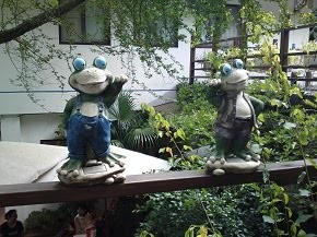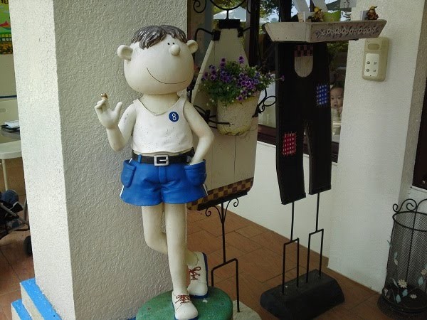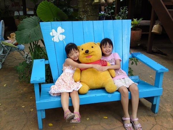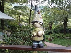飯後小孩子們就坐不住了,想到處去走走,大人們坐著吹風休息,真的很舒服,都不想動,最後只好每回派一個大人和小朋友去走步道。到處都有可愛的擺飾: