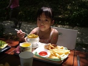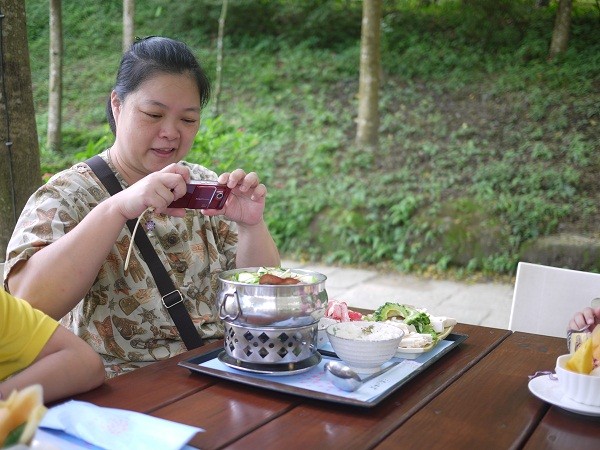 雖然在戶外吃飯,但是今天有風,很舒服耶,大家都吃得很滿意喔~