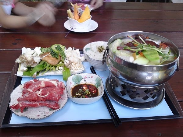 好豐盛的鍋喔,本來想夏天熱死了,還吃火鍋嗎?但是到新社,就是要吃菇菇鍋才對啊...,所以即使我怕熱,還是點了。口味不錯,料也很多。