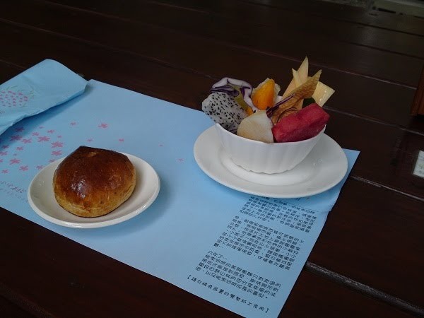 接下來是排餐的水果沙拉及麵包: