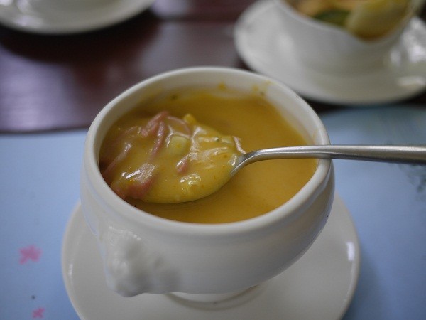 南瓜濃湯,裡面也有玉米及火腿啊~