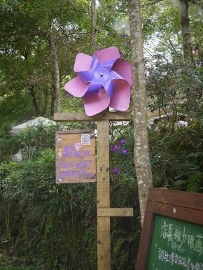 有這個紫風車是公所認定的安心商店,而最近是金針花與紫斑蝶的季節。