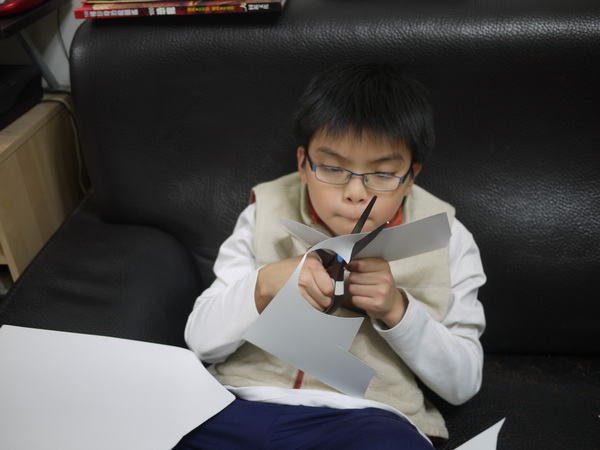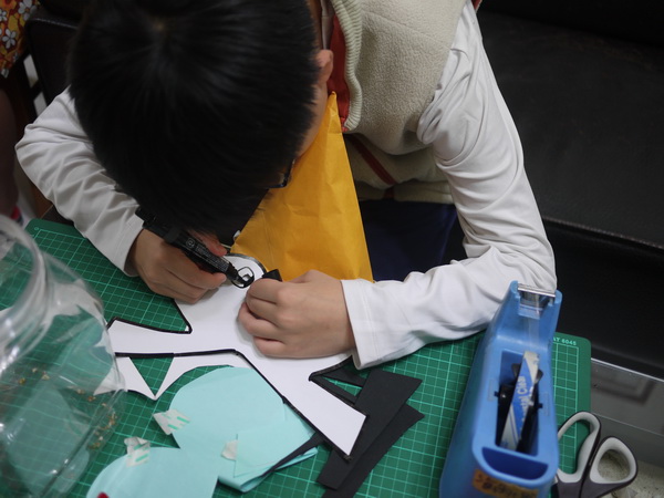 準備學校要舉行化裝派對的裝扮。據說前五名,老師會請吃珍珠奶茶,應該會有吧!