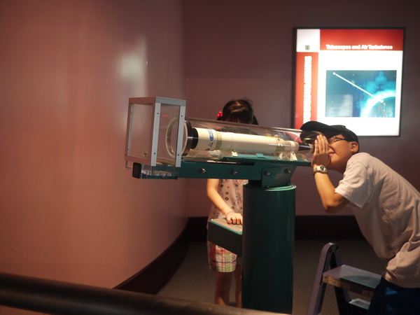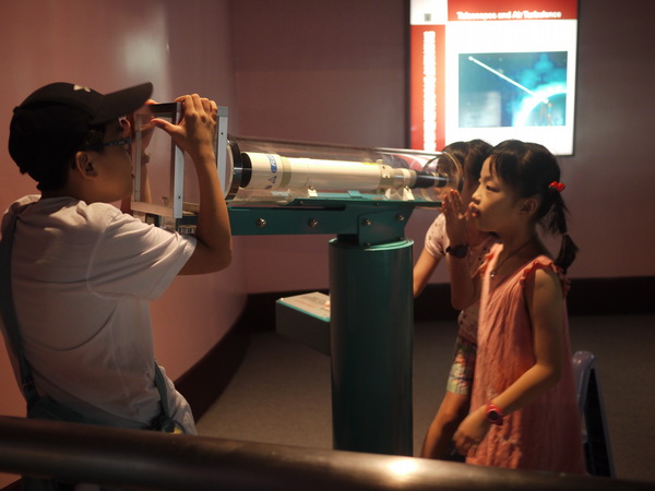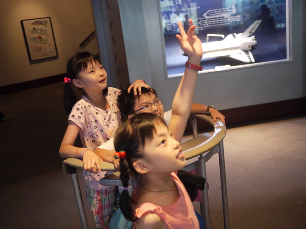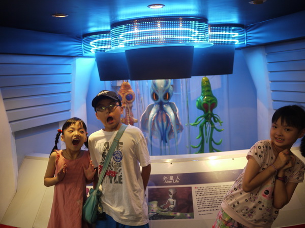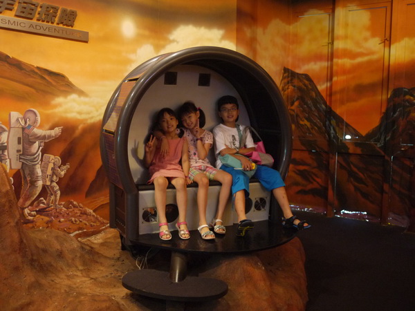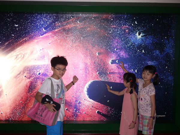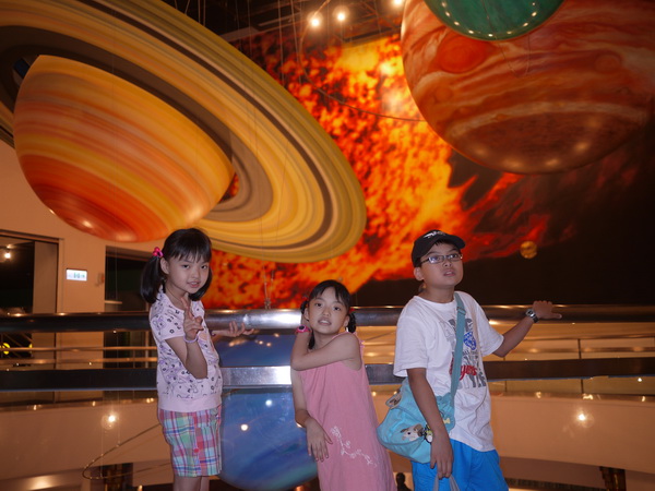 今天的台北氣溫飆漲,高達 38.3 度,人一站到戶外,就覺得有火爐繞在身旁燒。偏偏之前已經答應要出門去玩,想來想去,只有室內能待,於是前進天文館。意外的是,暑假大優惠,凡 12 歲以下的人都可以免費進場,所以小孩子都省了門票錢了。