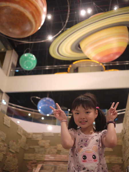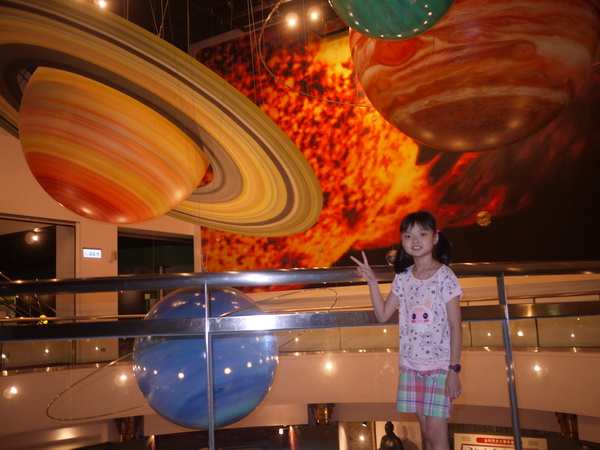 到了二樓,就可以直接站在九大行星前面了,寶寶如數家珍地一一說出各個行星。
