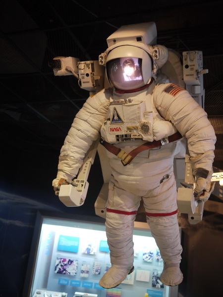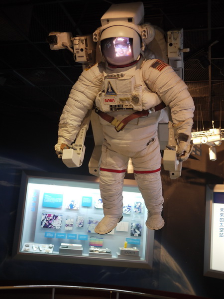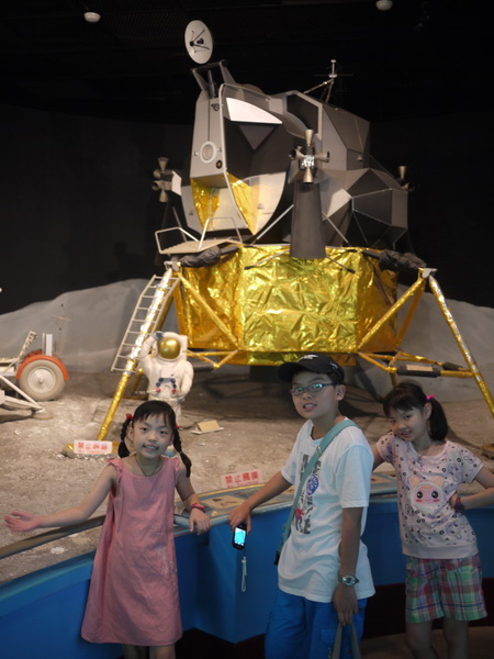 壯觀的登月小艇,爸爸本來錯過了,因為它展示在一個轉彎的角落裡。寶寶如發現至寶般,把爸爸叫來看。