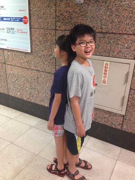 乍看覺得蓉蓉要超過哥哥了,趕緊比一下。