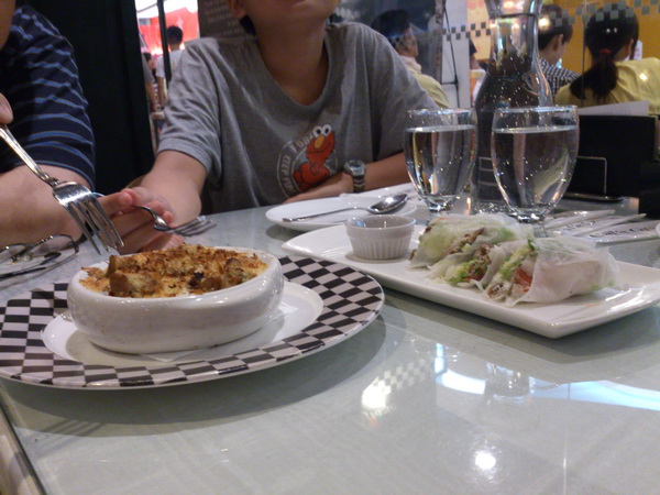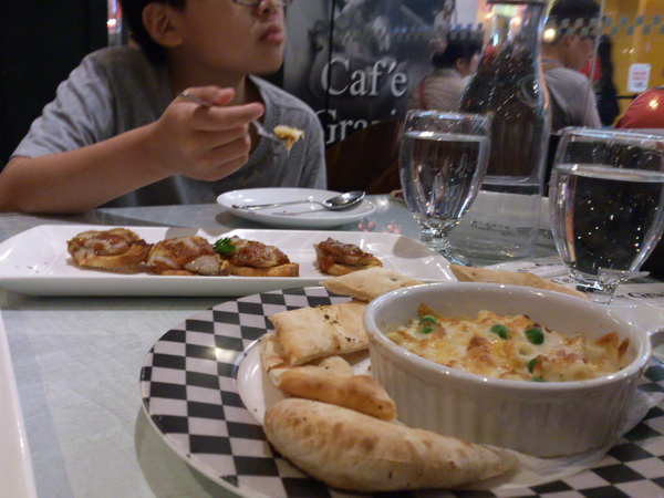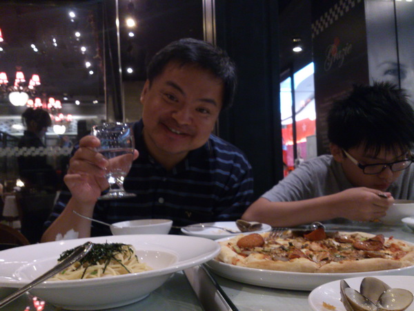 暑假之任務『九間異國美食餐廳』今天選擇義式屋古拉爵。不過假日的環球購物中心真是人滿為患,約莫十一點到時,已經沒座位了,排隊也要等到一點多,不過也沒別的選擇 (其他如Friday、瓦城、和民等也都爆滿),就先到樓下逛逛再慢慢等了。
