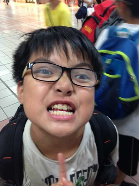 而大廳上等候的家長,也隨著時間而逐漸聚集了起來。最後,終於在兩個小時之後,見到了孩子們從車站另一頭集體走過來。看到寶寶的第一眼感覺就是曬黑,還帶著狂野的感覺,腳上佈滿了被蟲蟲叮咬的印記,果真像歷劫歸來的樣子。一見面就迫不及待和媽媽直講著營隊中的事情,就連坐在車裡也靠著前座座椅講個不停。