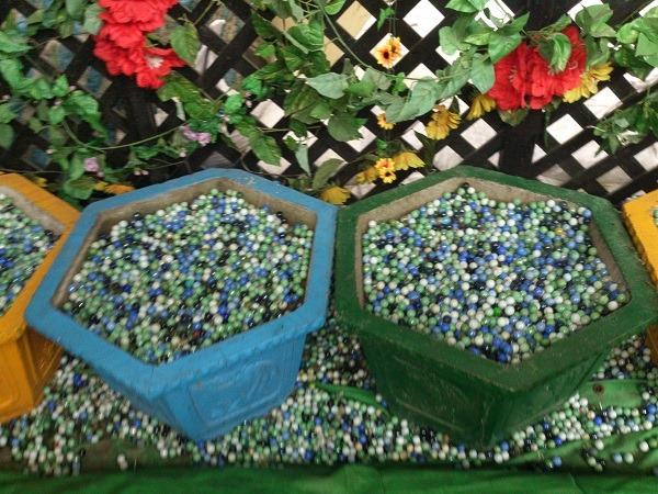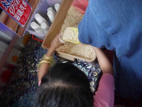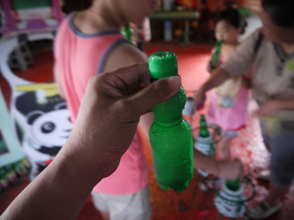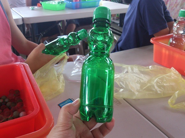這裡的彈珠一缸一缸放在那,可讓人隨便挑選帶回家,離開前,孩子們去撿了好多彈珠帶回家,當然手上的汽水瓶不會是空的,每個都裝滿帶回家,冰在冰箱,明天還可以喝。^_^
