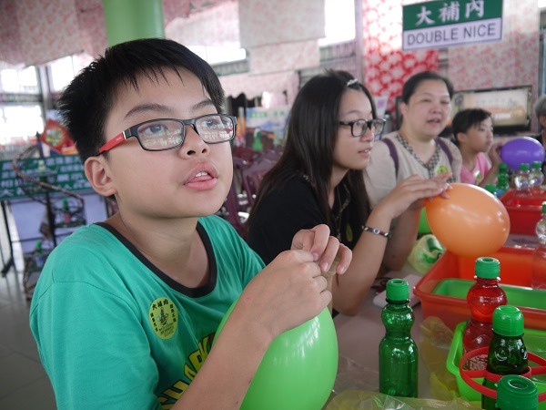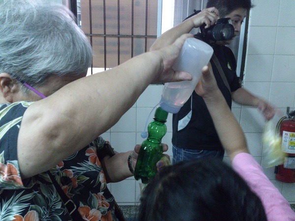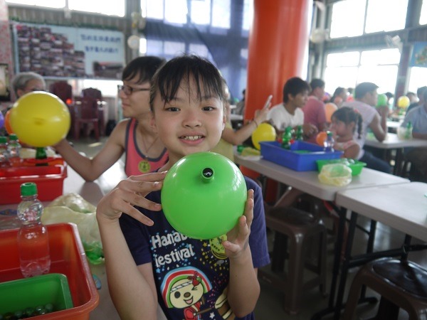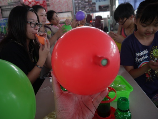 至此空瓶組裝完成,接下來主持人要我們吹氣球????