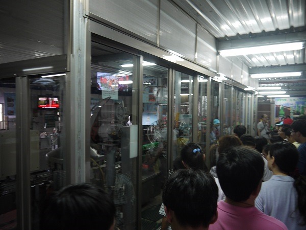 工作人員正在解說自動化生產流程與機器,我們還忙著裝糖漿,沒聽……