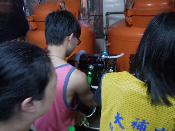 終於要裝汽水了,達哥第一棒。