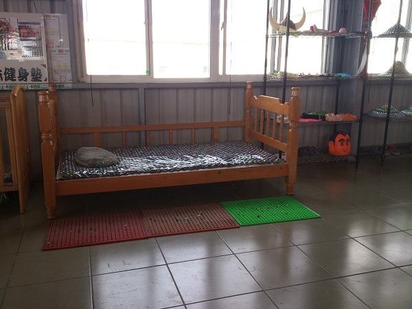 這還是全台唯一的彈珠床,忘了問是不是有像腳底按摩的功效?旁邊的架子上還有彈珠斗笠。