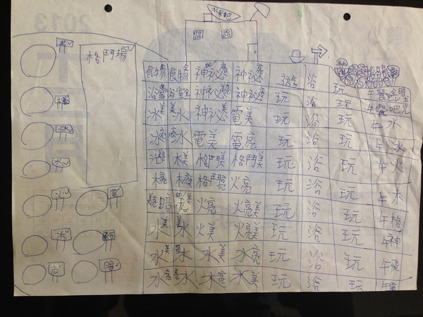 在桌上發現一張蓉蓉畫的紙,依照最近沈迷於手機線上遊戲的她,應該是某種相關的遊戲資料或自己的設計,不過問也問不出個所以然來。