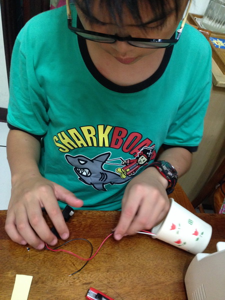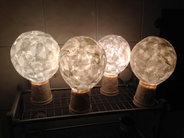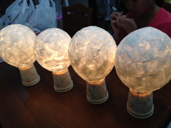 假期在家的娛樂,利用紙漿做成的小桌燈。