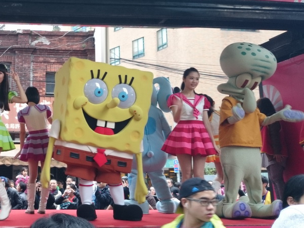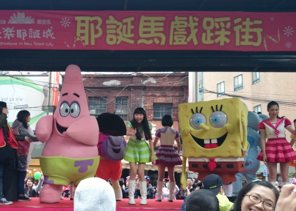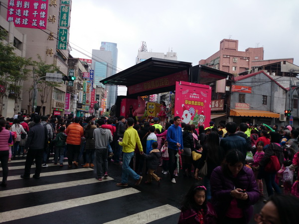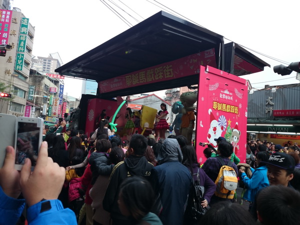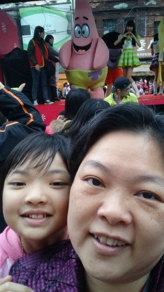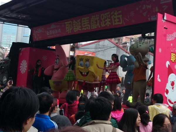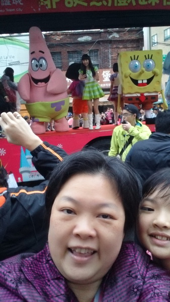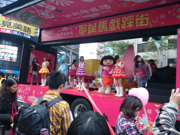 媽媽趁著在等待朱宗慶教室上課前,帶蓉蓉逛逛,板橋站前正好是耶誕節的踩街活動。