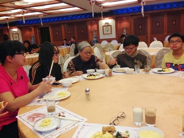 在飯店早餐,第一晚是住在台南車站附近的新朝代大飯店,寶寶和達哥兩人,吃飯也在玩手機,去拿菜時,手機順手就放在桌上,我們就趁此機會沒收手機,兩人還不自覺,過了一會才發現手機勒?大家都裝傻,不過他們倆個也老神在在,知道是被我們沒收,寶寶三不五時就來魯要我們還手機...