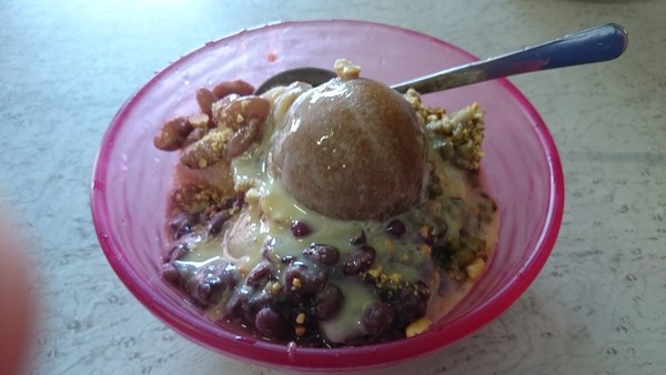 到了南澳,在主要的馬路上立刻就見到有印章的建華冰果店,停了車、吃了冰,有古早味的清冰為底,很好吃,老闆娘在門口攬客,對每一個路過的遊客都問『有幾位』,不過一點都不會讓人有強拉客的反感,反而覺得很親切。